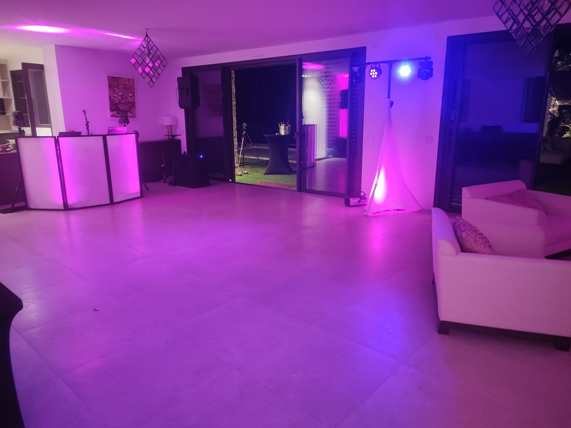 Les photos de prestations passées vous donnent une première idée : comment nous installons notre matériel, comment se présente la salle une fois l’ambiance lancée. Vous trouverez des clichés de soirées similaires à la vôtre (taille du lieu, type d’événement).